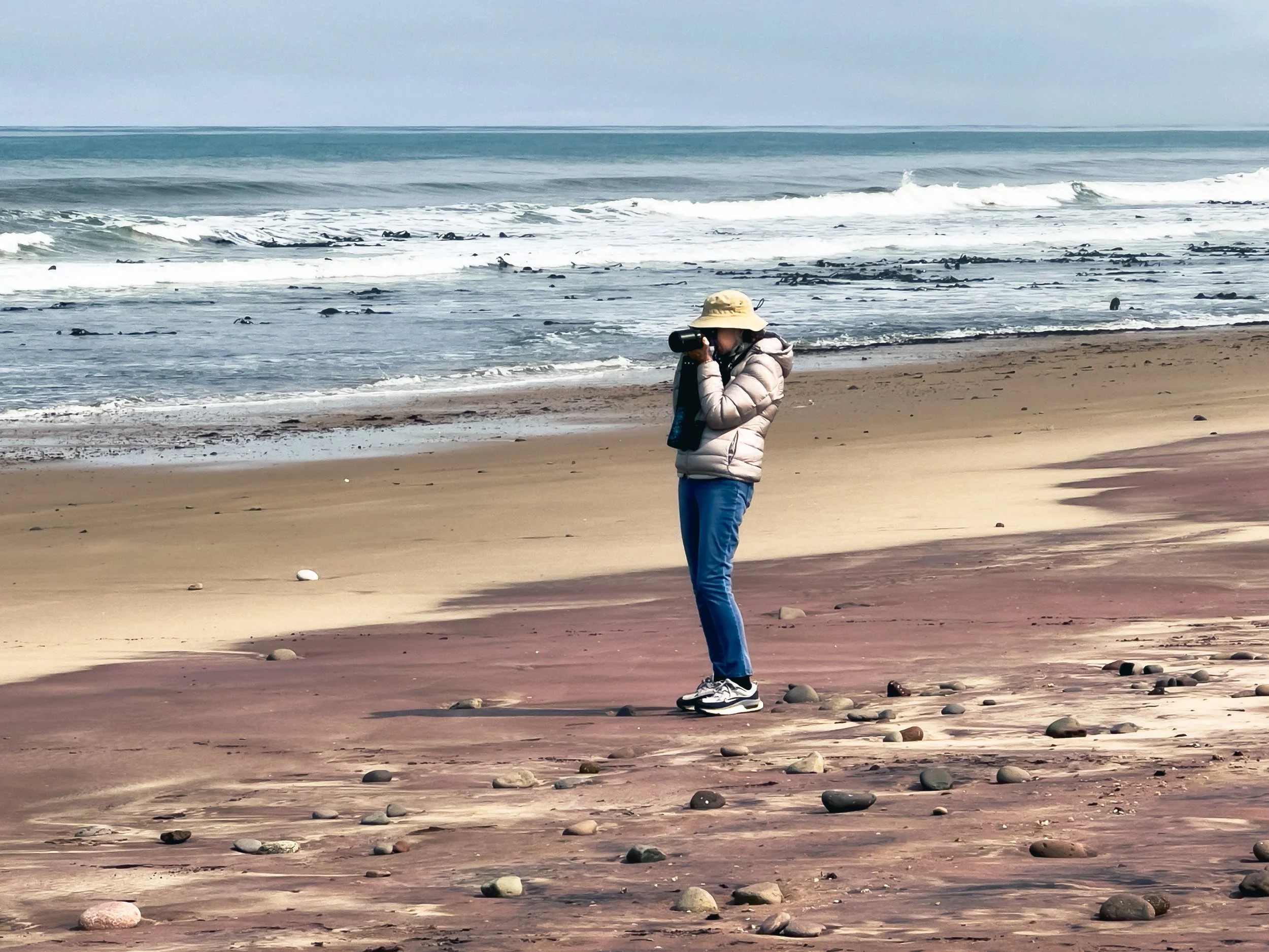 Rana Fine on the Skeleton Coast of Namibia in 2023. Photo taken by Roger Milstein.